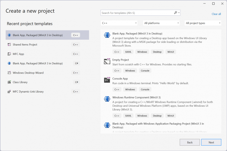 I will use Visual Studio 2022 and C++ (version 17). By the time I write this how to, Microsoft is up to the (stable) Version 1.7250606001 of the WindowsAppSDK. I am using Windows 11.