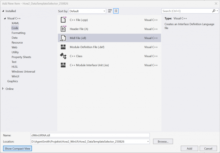 You should be familiar with WinUI and how to create an app, as well as how to use auto generated code (from the MIDL compiler), etc. I will not discuss these steps in detail. For styling purposes, I use the WinUI Gallery.
