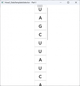 In the second part of this how to, we will implement a “data template selector”. Using a data template selector we can have individual data templates. Using such a selector each nucleotide can have its own visual representation. And we will also add an “error nucleotide” which is a representation of invalid nucleotides.